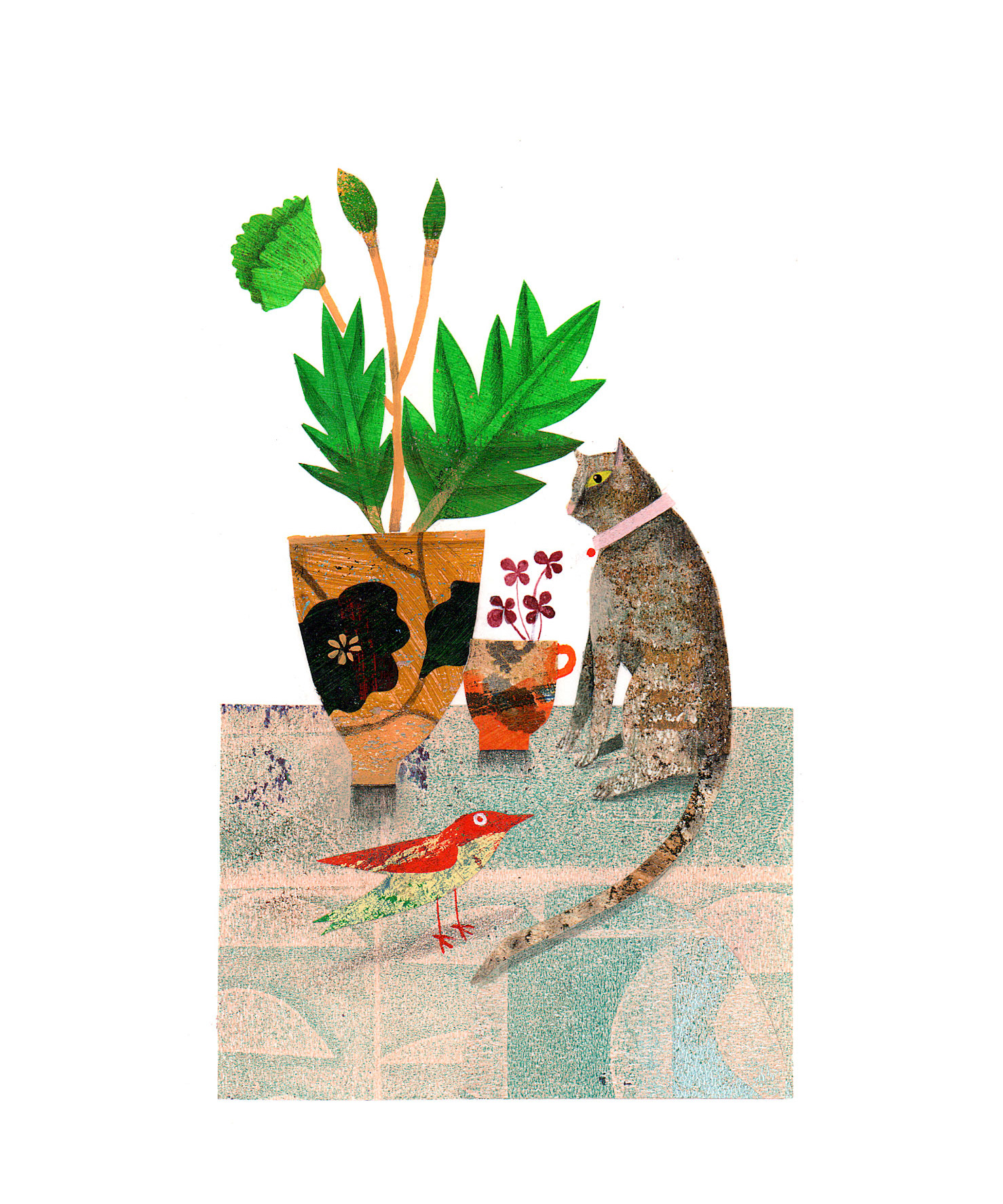 Format 13x18 cm, collage et papier peints découpés sur papier Canson Montval 300gm