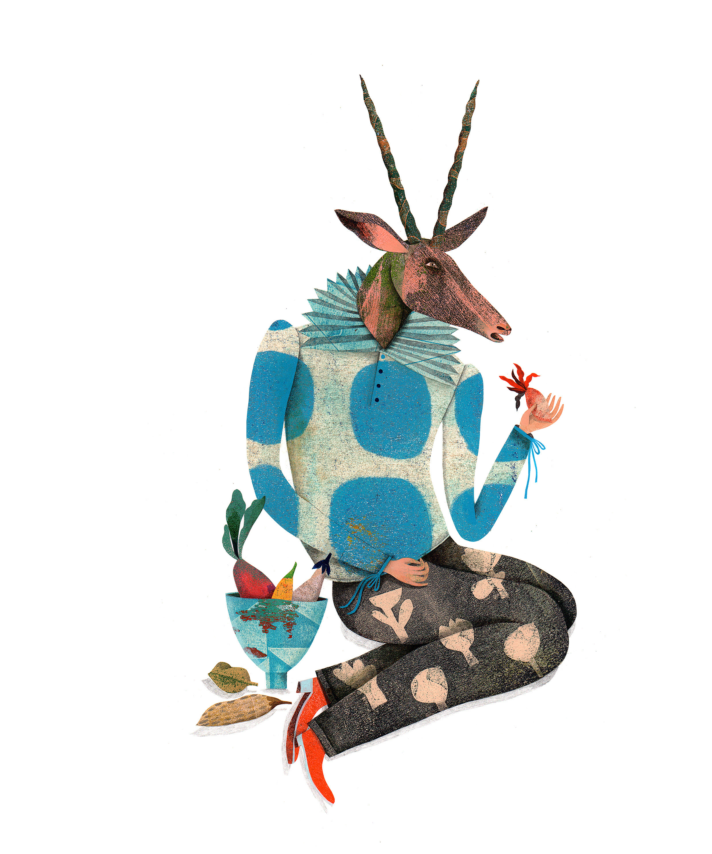Antilope avec coupe de fruits